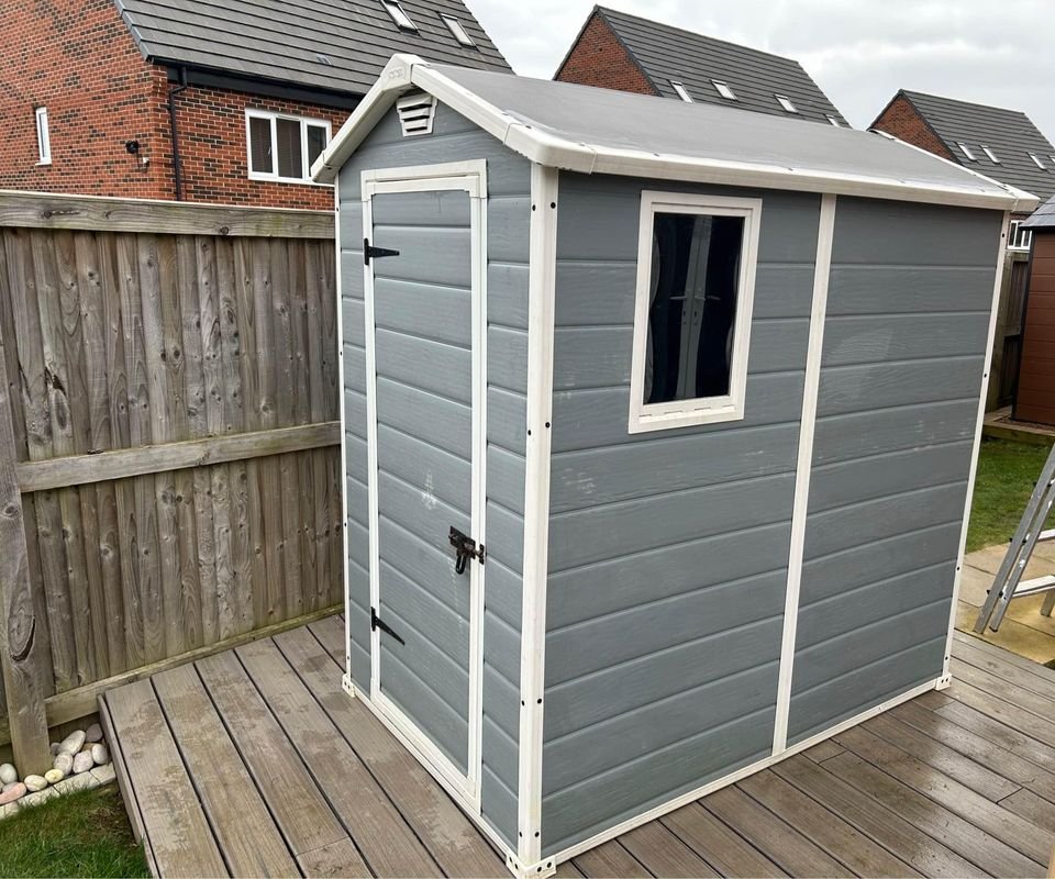Keter Manor Outdoor Plastic Garden Storage Shed, Grey, 6 x 4 ft